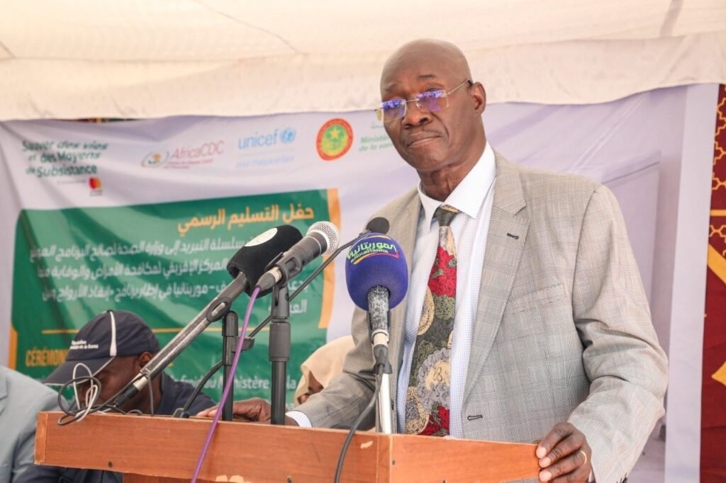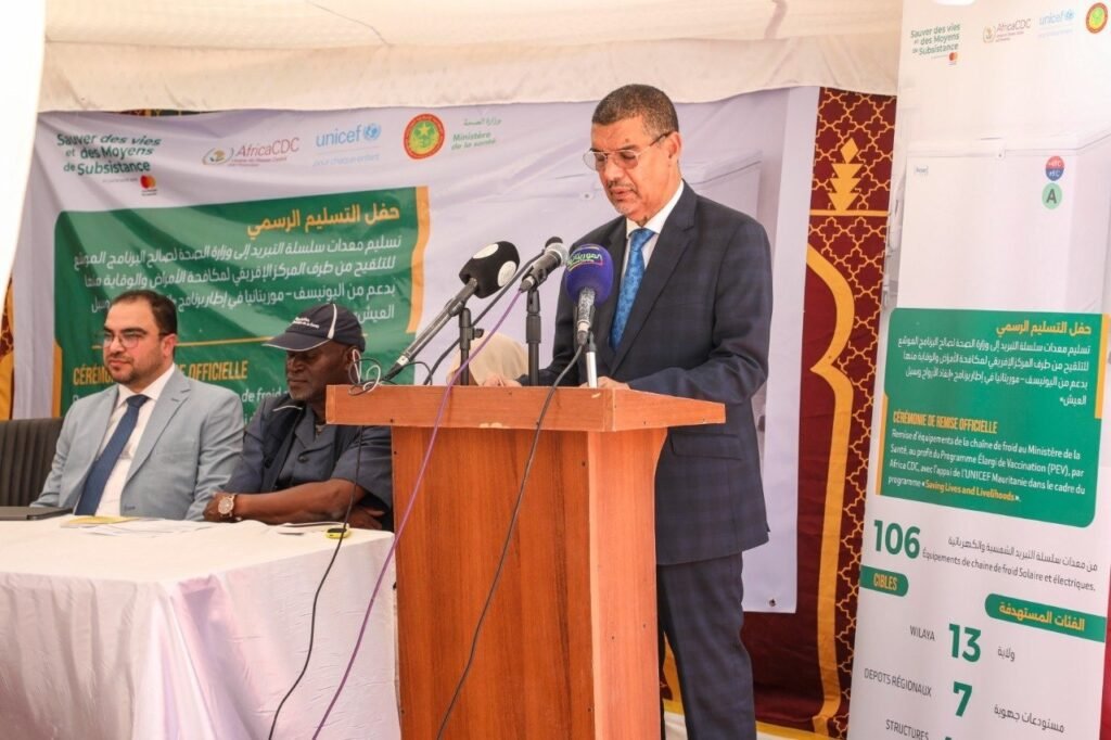 تسلّم البرنامج الوطني الموسّع للتلقيح تجهيزات جديدة مخصّصة لسلسلة التبريد، بإشراف المكلف بالمهمة الشيخ باي امخيطرات، وبحضور المدير الإقليمي للمركز الإفريقي لمكافحة الأمراض والوقاية منها لمنطقة شمال إفريقيا وسام منقولة، وممثل صندوق الأمم المتحدة للطفولة (اليونيسف) آداما أودراكو.